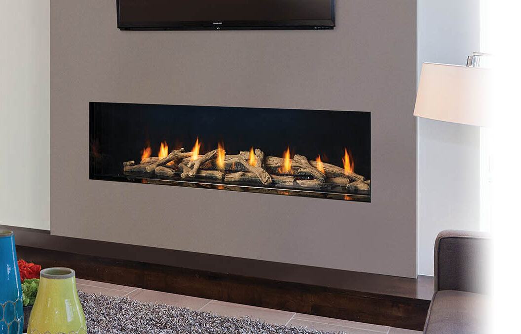 Large fireplace with a 60″ linear burner. It has a clean uninterrupted linear view and is zero clearance for design flexibility. Direct Vent and Power Vent are available.