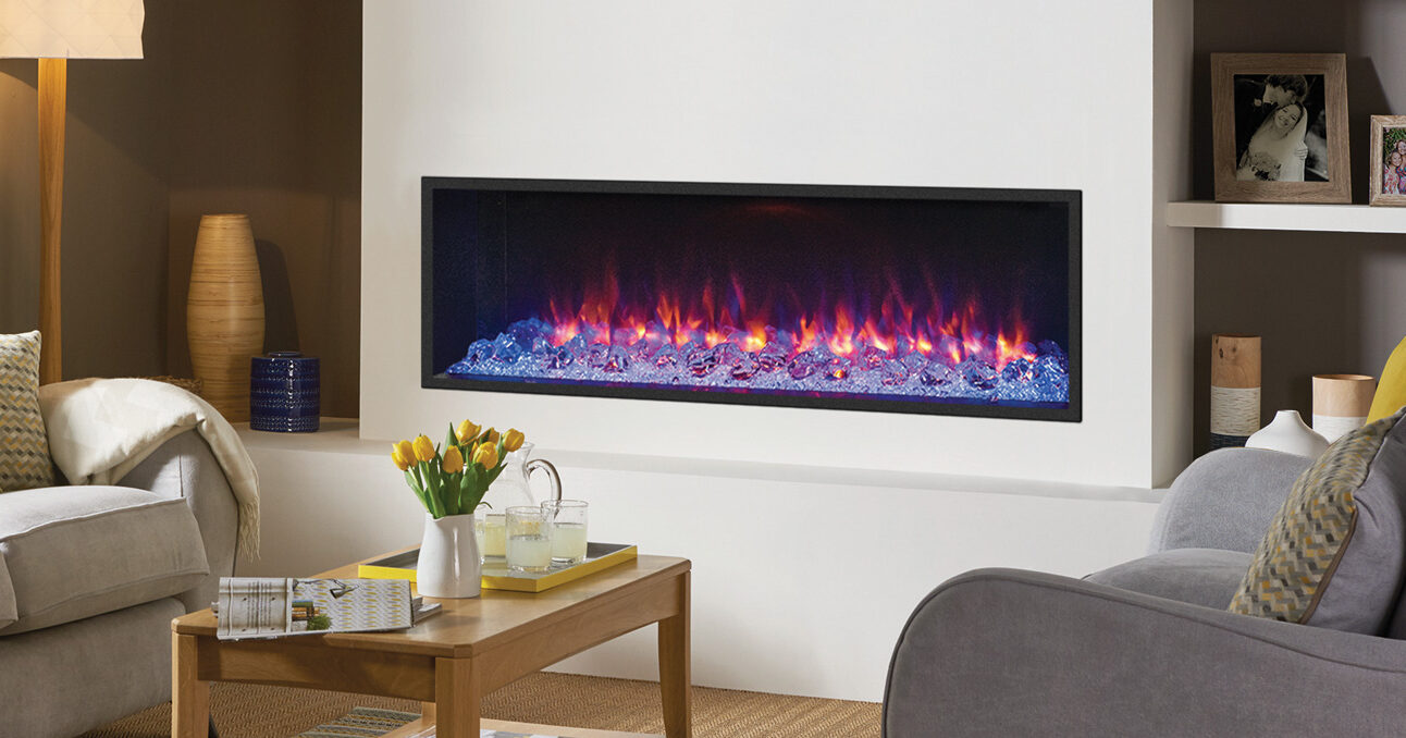 - Mix and match fuel effects including logs, pebbles & crystal ice effect