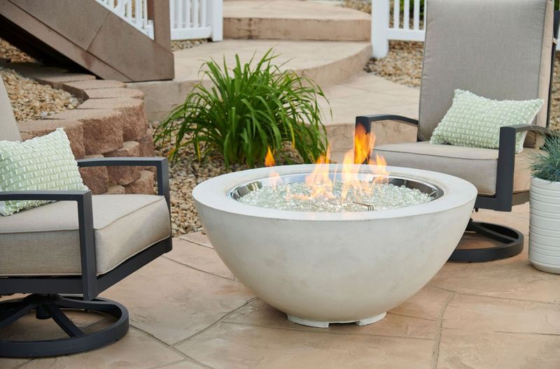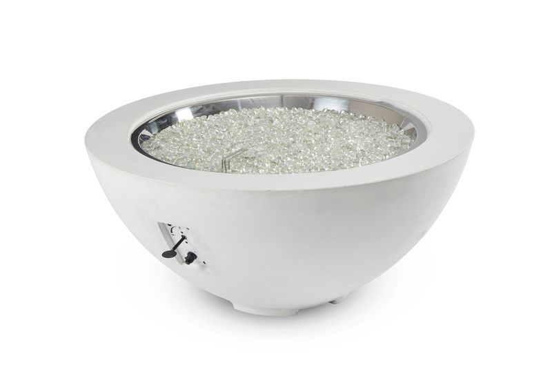 The 42” Cove Gas Fire Pit Bowl is the perfect addition to any contemporary outdoor space. The White Supercast™ concrete lets the focus be on the stunning 30″ Round stainless Steel Crystal Fire® Burner. The organic, nature of the concrete is unique to each fire pit. Color variations and casual pitting are common attributes to the fire pit.