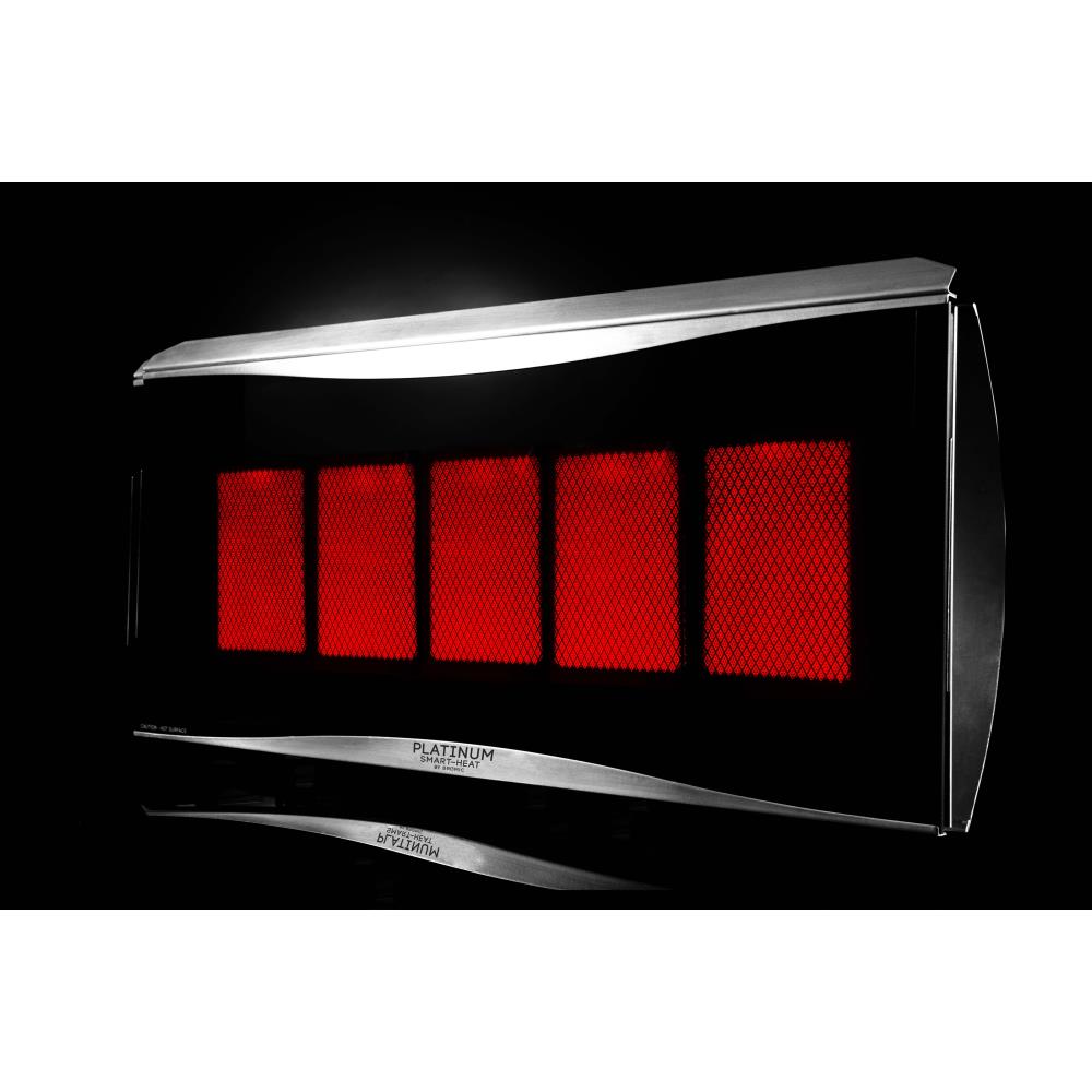 Platinum Smart-Heat – 500 Series Patio Heater, Item # BH0110003 The Platinum Smart-Heat 500 Series Patio Heater holds an impressive design to stand out amongst its competitors for outdoor heat. Protected behind its ceramic medium, this series delivers 39,800 BTU?s of even heat. The pivot arm brackets allow the heater to be wall or ceiling mounted and wired into smart system controls to fit any heating preference. This series is also available in a 300 series which delivers 23,600 BTU?s of heat.