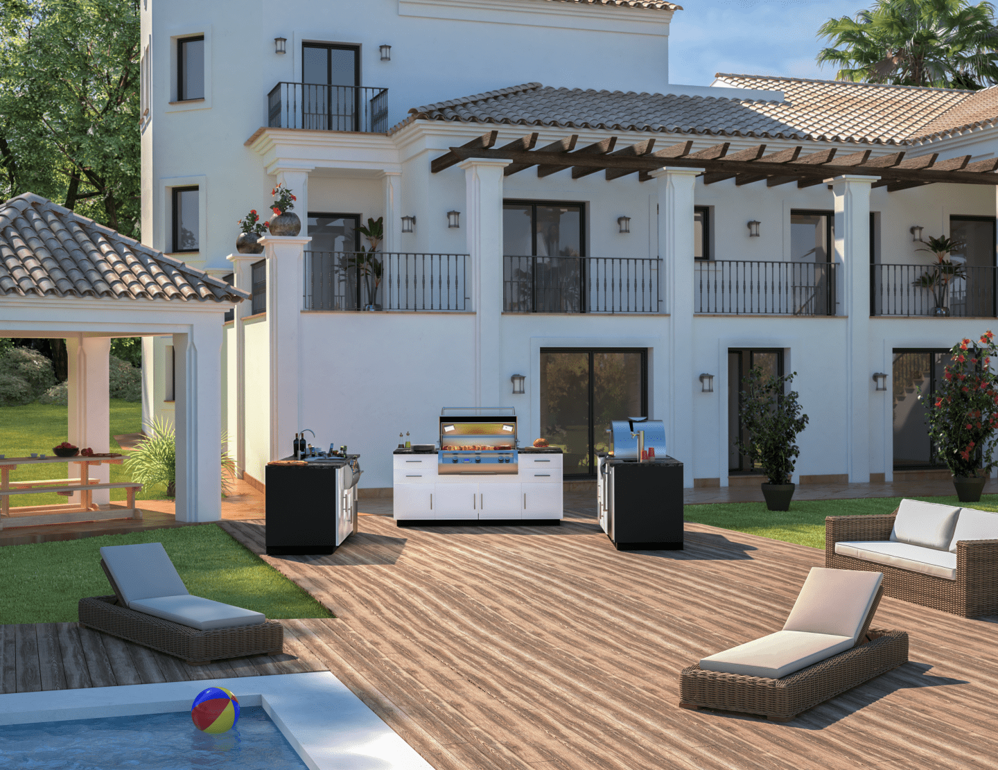 The Capri islands come in multiple configurations to hold your beverage centers, griddles, pizza ovens, and even Kamados.