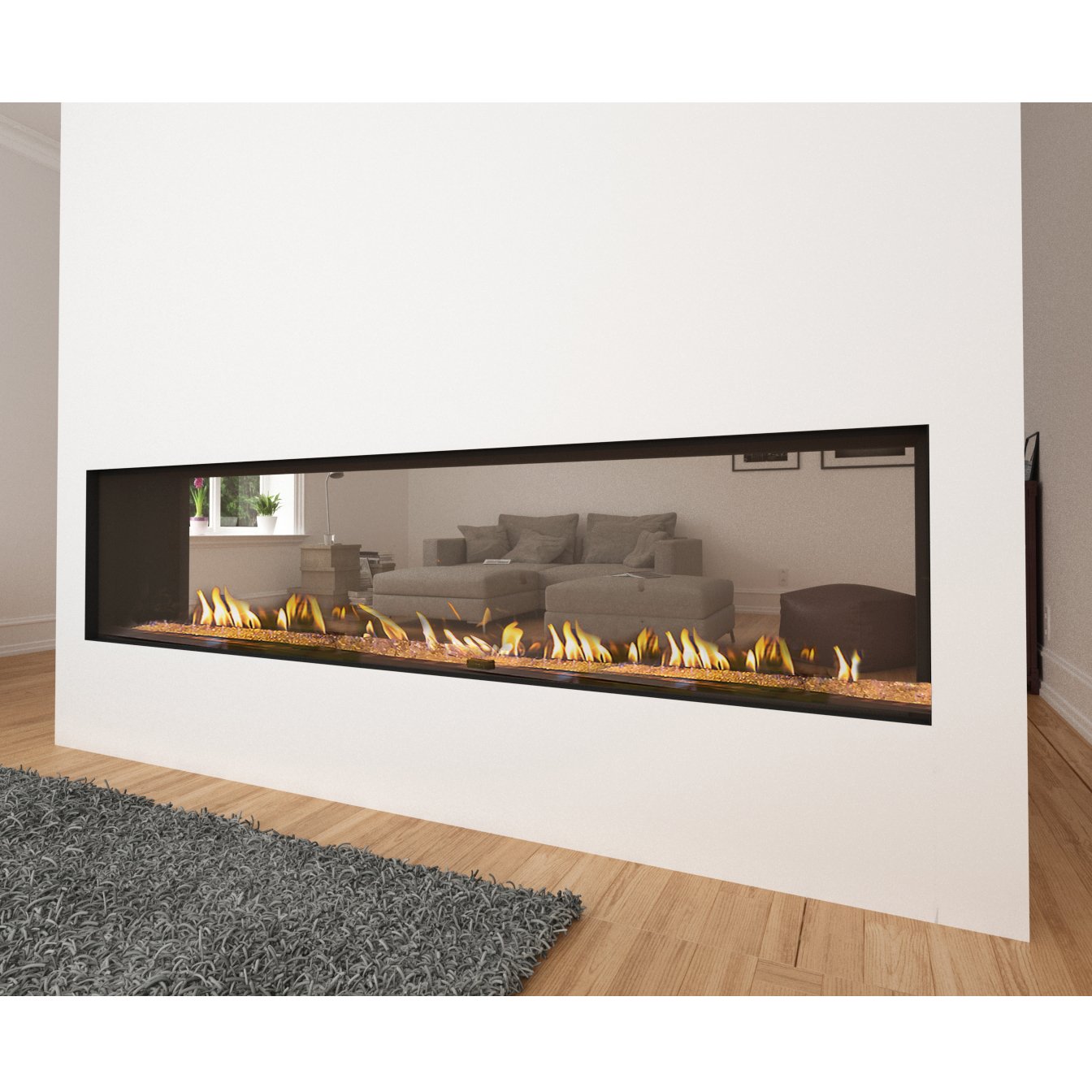 With exposure and visibility from both sides, tunnel fireplaces are encased in walls or columns, dividing living spaces with contemporary style and modern efficiency. Displaying – see-through design, which creates and emits warmth and beauty in two separate areas.