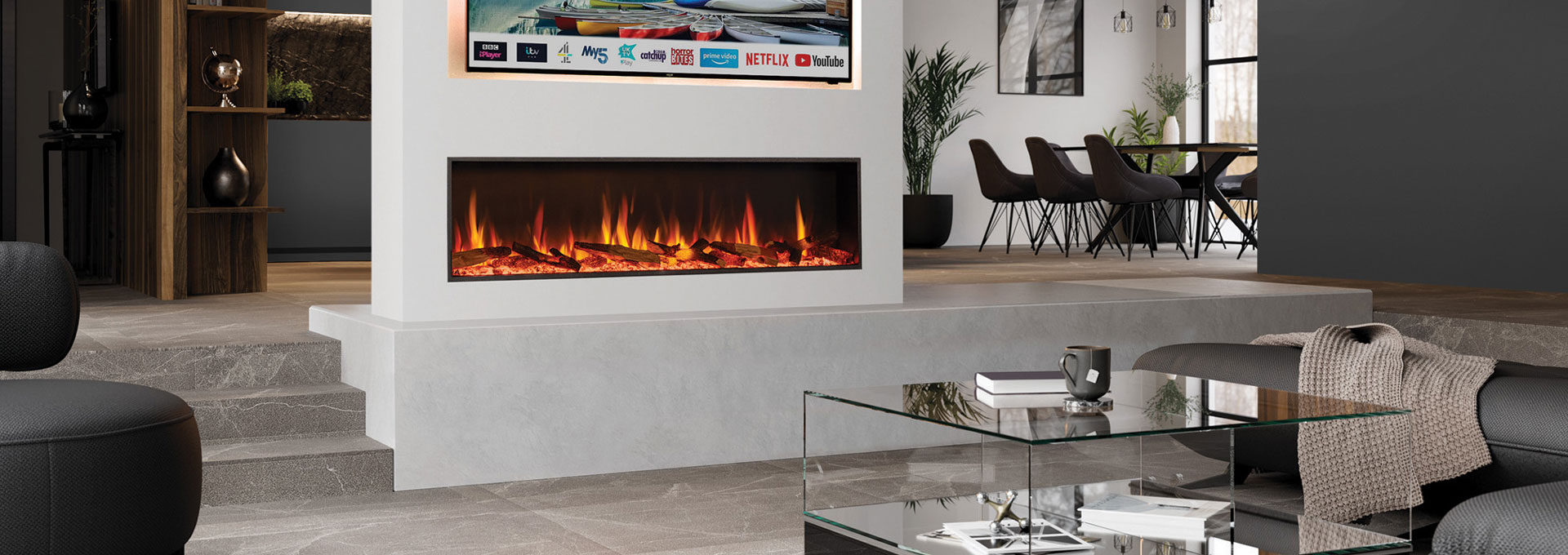 A 65″ sleek and stunning electric fireplace that combines versatility functionality and modern elegance to provide the perfect ambience.
