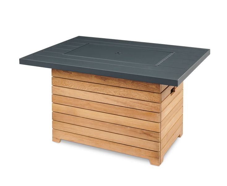 The Darien Gas Fire Pit Table with Aluminum Top is a modern solution for making your outdoor room cozy. The industrial aluminum top complements the durable, elegant Grade-A teak base. Complete this look by adding a pair of Darien chairs for the deck or patio.