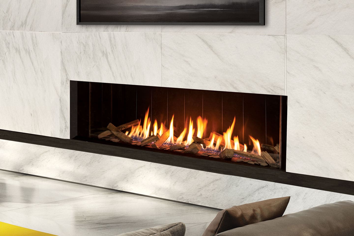 - Add the One Sided Installation Kit to a Bay Style unit to create a Linear Fireplace