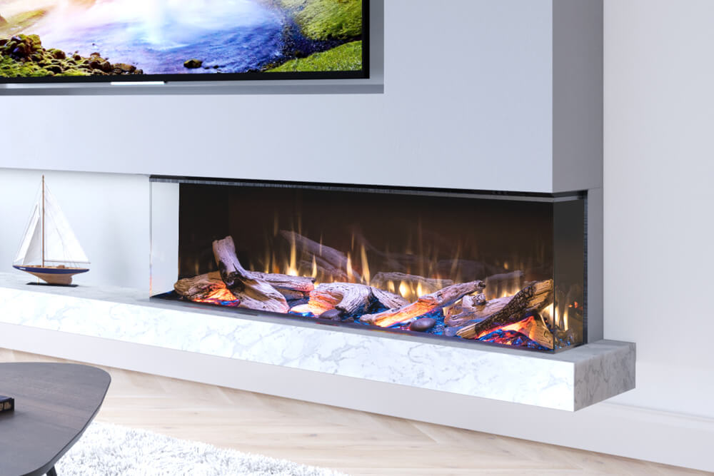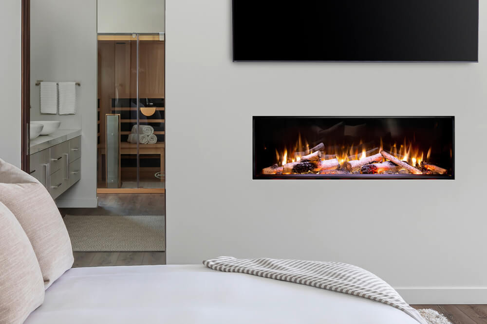 The LEX2 electric fireplace is ideal when creating two rooms out of one, easing the transition from one to another, or being installed in - feature wall. Whatever side you take, the LEX offers stunning birch, driftwood, and splitwood log sets along with an ultra-realistic flame-effect.